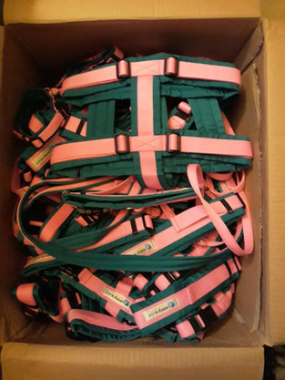 Dank Kati, die uns auf diese mega tolle Weihnachtsaktion von ANNY-X AID hingewiesen hat, kamen wir in den unglaublichen Genuss von sage und schreibe 20 Sicherheitsgeschirren, 28 Halsbändern und 2 Leinen von ANNY-X AID.